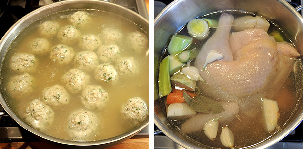 Diese Suppenknödel wollte ich schon lange mal ausprobieren. Da jetzt Suppenwetter ist passte es gut. Sie werden am Jüdischen Feiertag Pessachfest serviert, oft in einer Hühnersuppe. Dieses Rezept erklärt nur die Matzenknödel nicht wie die Suppenbrühe hergestellt wird. Da benutze ich einfach meine Hühnersuppe klassisch und nehme statt Nudeln die Knödel als Einlage. Rezeptinspiration aus der NYTimes.