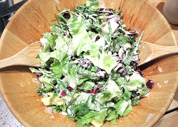 Das Dressing ist vielseitig und kann für Blattsalat oder auch andere Salatzutaten wie Kichererbsen, Selleriestangen, Tomaten, Karotten … usw. verwendet werden je nach Saison und Angebot.